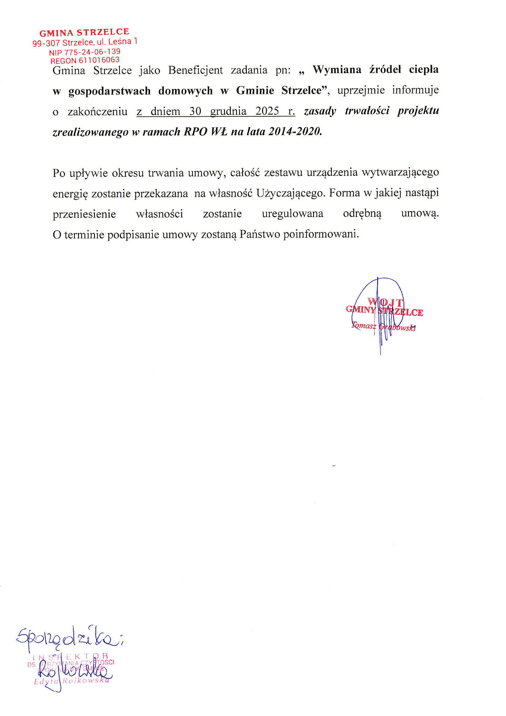 – Informacja o zakończeniu zasad trwałości projektu zrealizowanego w ramach RPO WŁ na lata 2014-2020