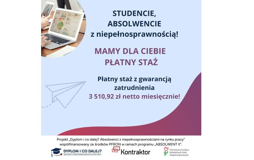 - Płatny staż: 3 510,92 zł netto/miesiąc
